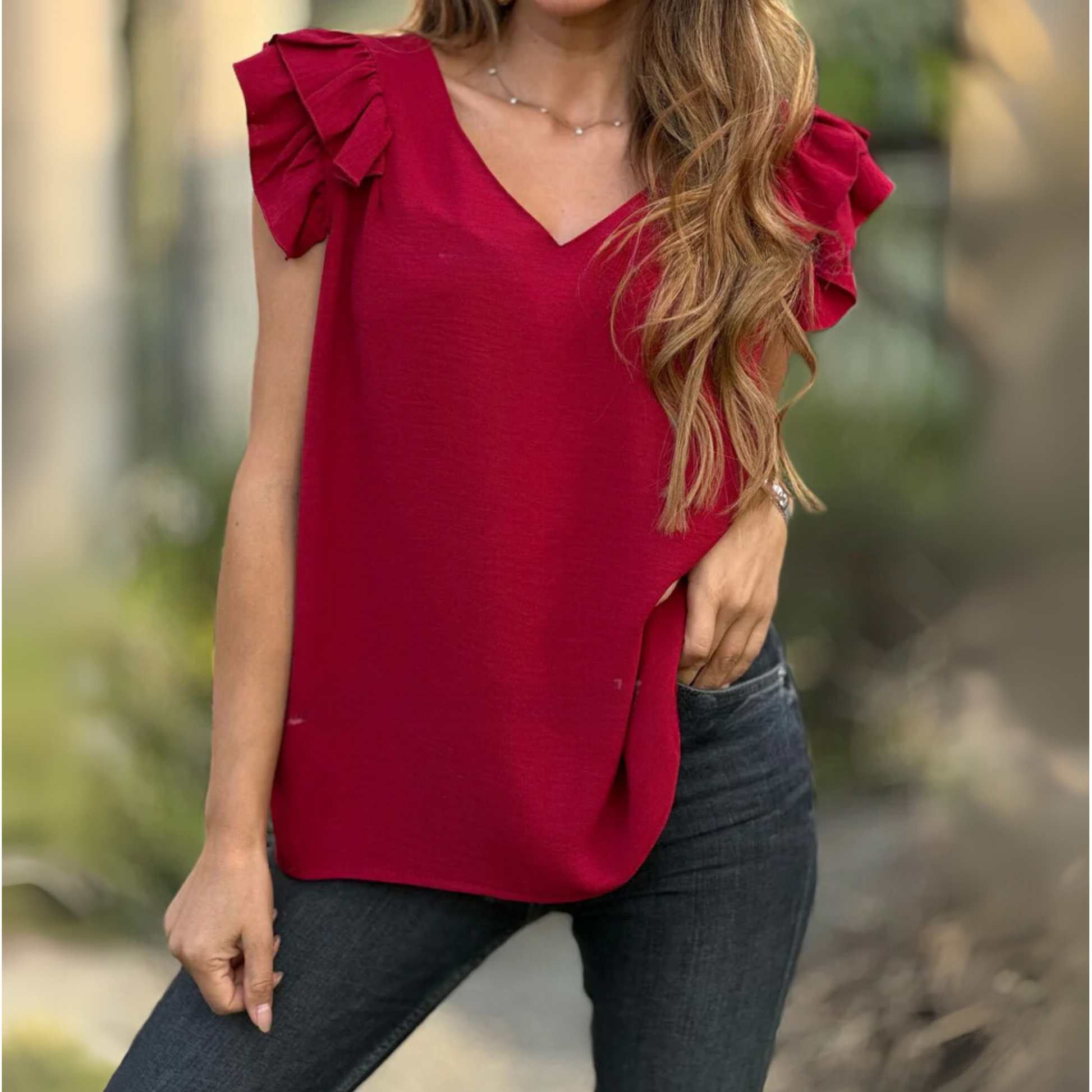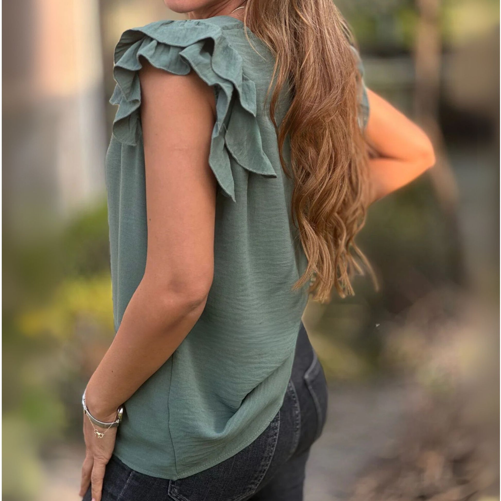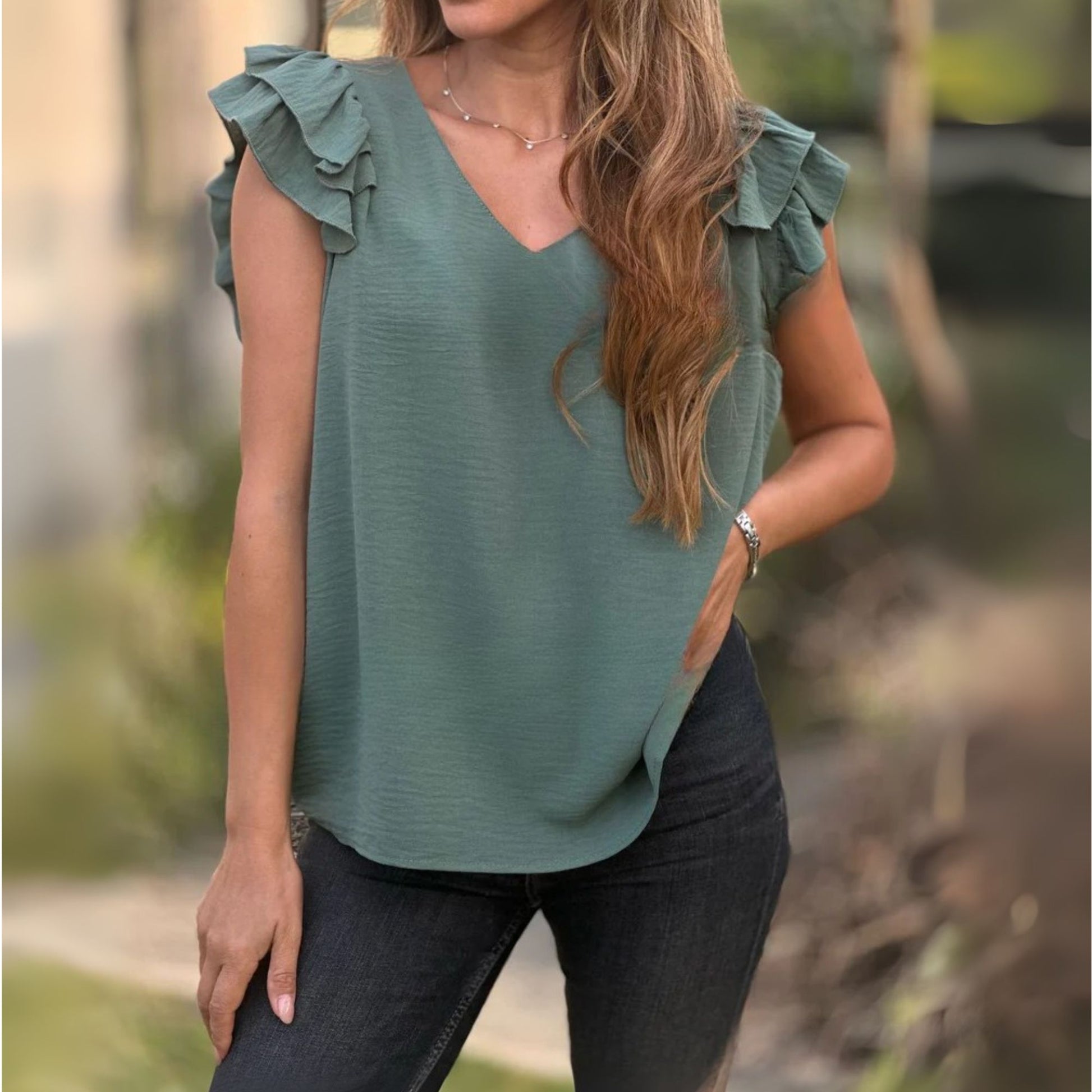 Escote en V y volantes